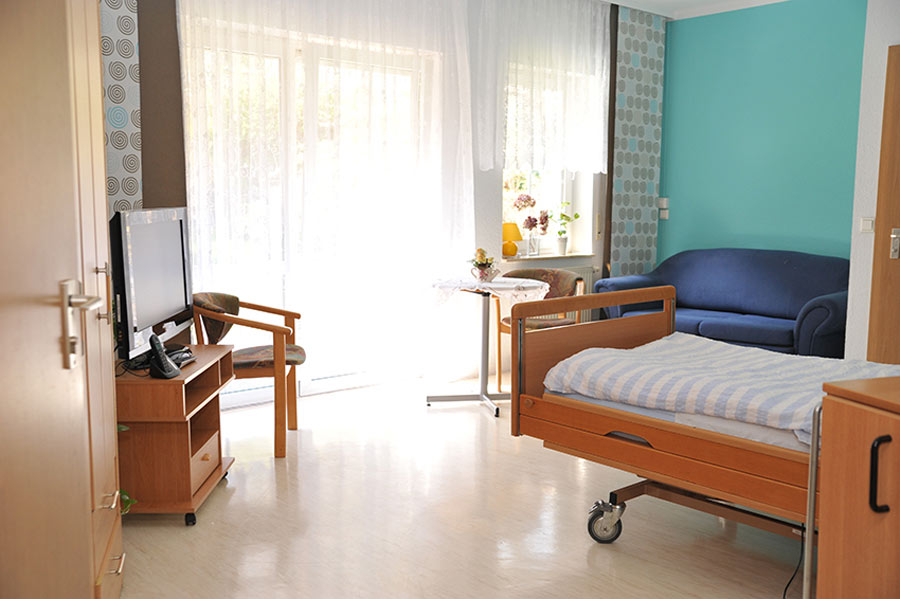 Unsere Zimmer sind unterschiedlich eingerichtet und liebevoll gestaltet. Zur barrierefreien Grundausstattung gehören ein Pflegebett, ein Nachtschrank, Tisch und Stühle, ein Kleiderschrank und ein Regal. Zur weiteren Zimmerausstattung zählen TV, Radio und Telefon. Es ist uns sehr wichtig, dass sich die Bewohner unseres Hauses heimisch fühlen. Darum können gern auch eigene Kleinmöbel und persönliche Gegenstände mitgebracht werden.